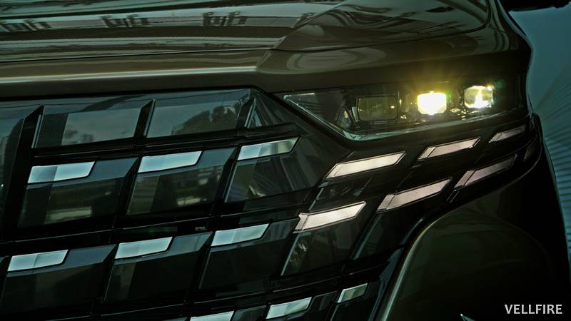 The slim lighting systems for both models are new and now use Full LED Headlamps. To differentiate the Alphard and Vellfire, the designs of the lamps at the front and rear are exclusive to each model, those on the Alphard mimicking the distinctive three-dimensional structure of the grille.