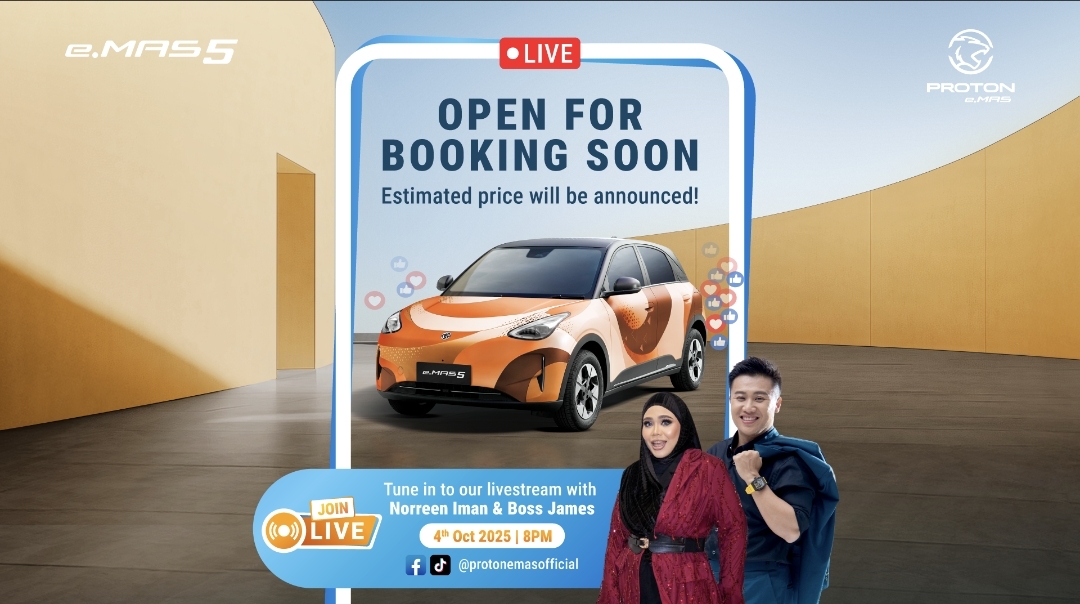 The official launch day of PROTON’s second fully electric model – the Proton e.MAS 5 – is coming closer. PRO-NET (the PROTON subsidiary managing its New Energy Vehicle business) has announced that all Proton e.MAS dealers nationwide will begin accepting bookings from this Saturday, October 4, 2025.