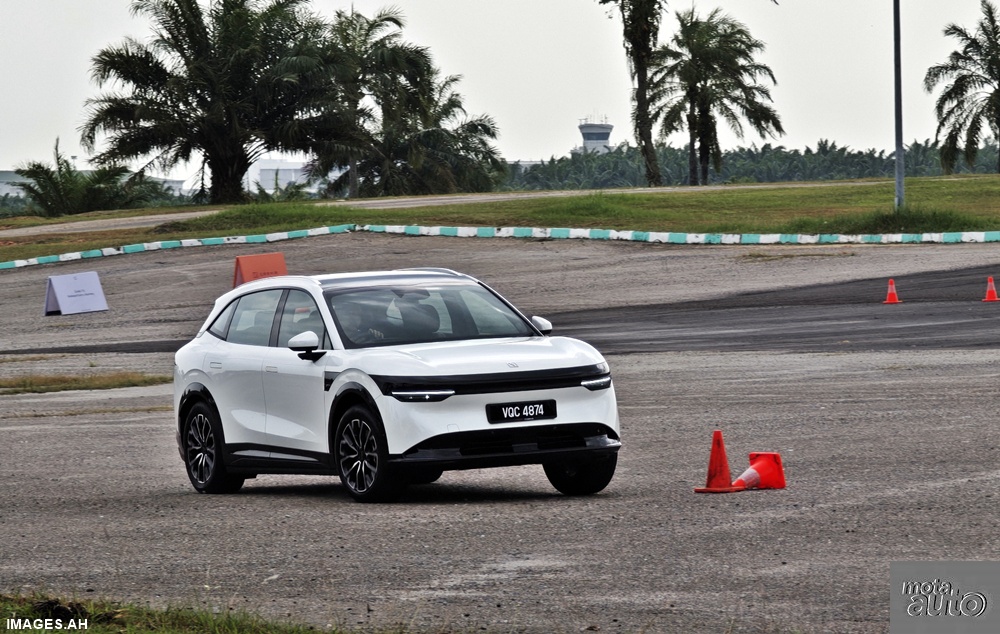 James took us on a short drive at the Bay 13 course near the Sepang Circuit during a session with the EV. Although there’s an off-road mode to moderate the 710 Nm of torque which is available from starting off, it was switched off because this mode is only available below 40 km/h – which normal drivers should be travelling at. But he could manually raise the chassis height to the maximum of 230 mm to have the ground clearance necessary on the rough and uneven track.