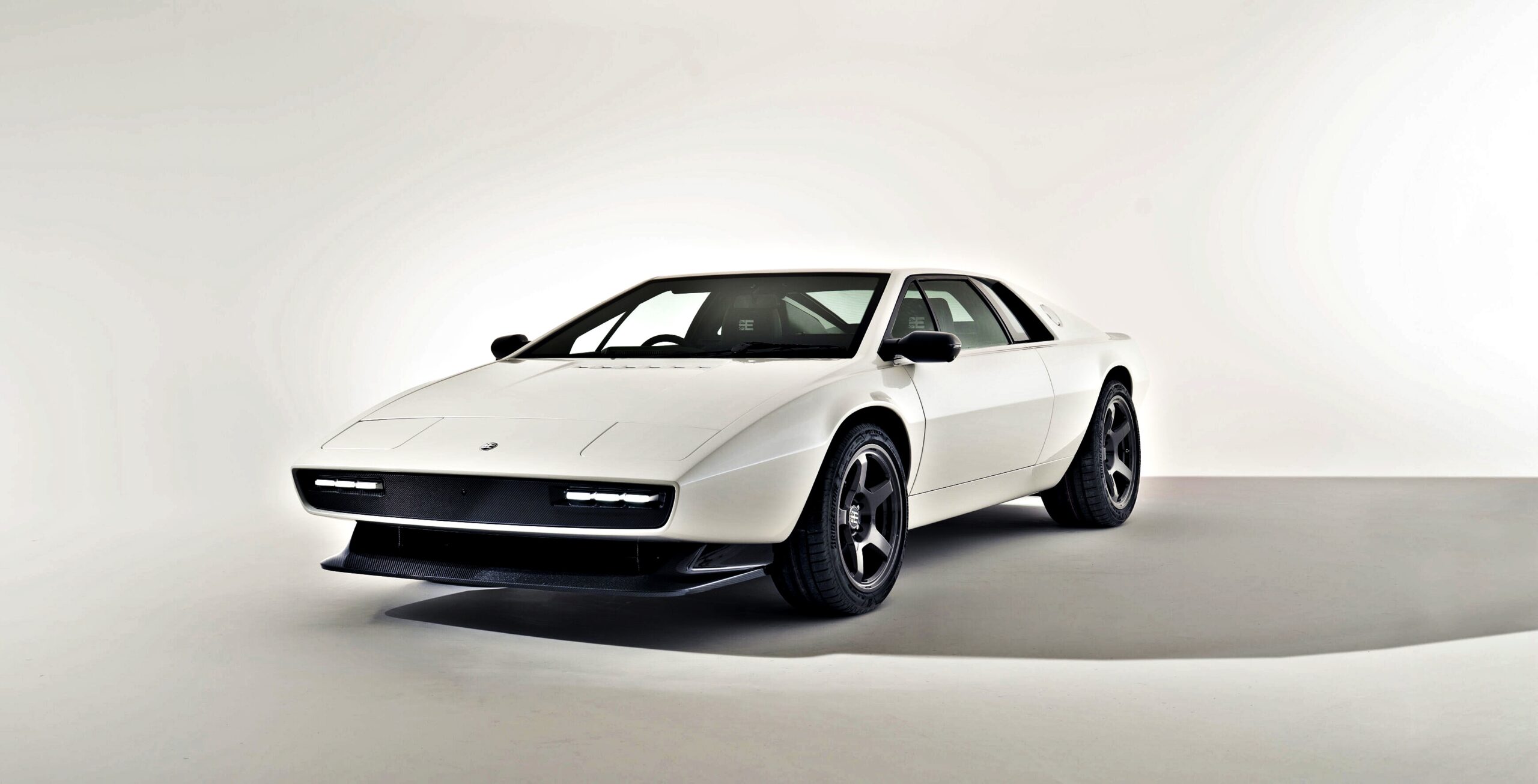 The distinctive two-piece mould line of the 1970s fibreglass body could be removed, replaced by an uninterrupted autoclaved carbonfibre shell that captures the purity of early sketches. The result is a form that looks unmistakably Esprit, yet reveals its quality instantly: the tautness of the wheelarch surfaces, the crispness of the shoulder line, the exquisite sharpness of the front volume.