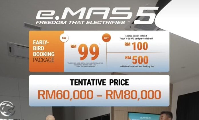 The first 5,000 customers who successfully register their e.MAS 5 will receive a limited-edition Proton e.MAS Touch ‘n Go NFC Card preloaded with RM100 along with an additional RM500 rebate on the booking fee.