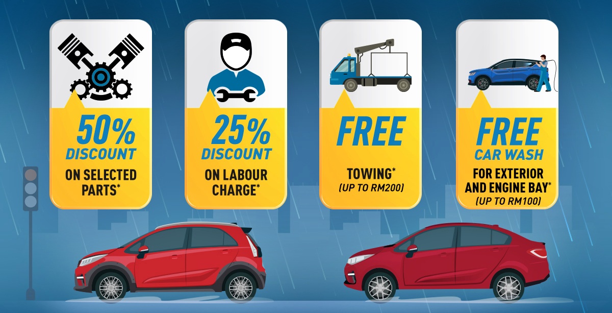 • 50% discount on selected parts for Persona, Iriz, Exora, and Saga models