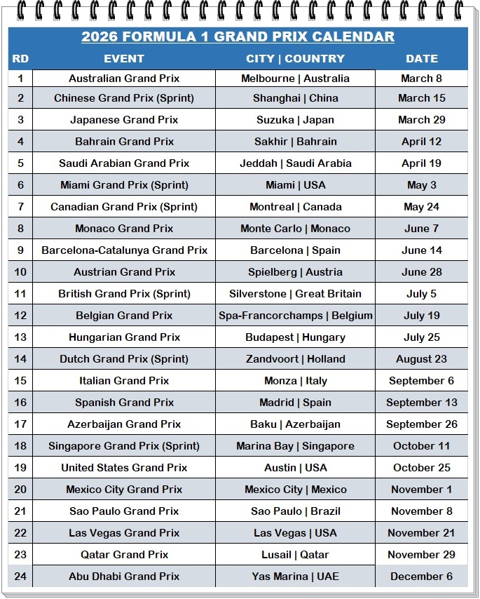 - The 2026 F1 season starts in Australia, as usual, on March 8 with 24 rounds on the calendar.