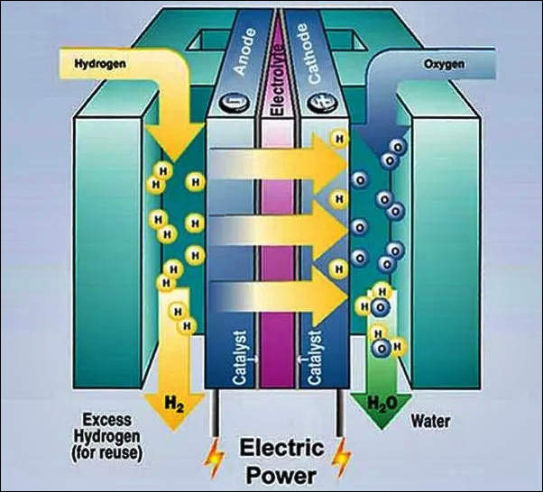 The use of hydrogen as a fuel is usually in conjunction with a fuel cell, one of the technologies originally developed for spacecraft. The fuel cell converts the energy in hydrogen into electricity which is stored and used to power motors in a vehicle that is known as a Fuel Cell Electric Vehicle (FCEV).