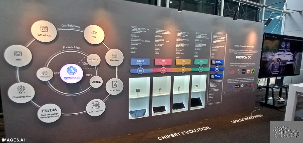 ACO Tech, the PROTON subsidiary which develops connectivity hardware and software for Proton models, is also displaying its technologies and provides a glimpse of information displays for future models.