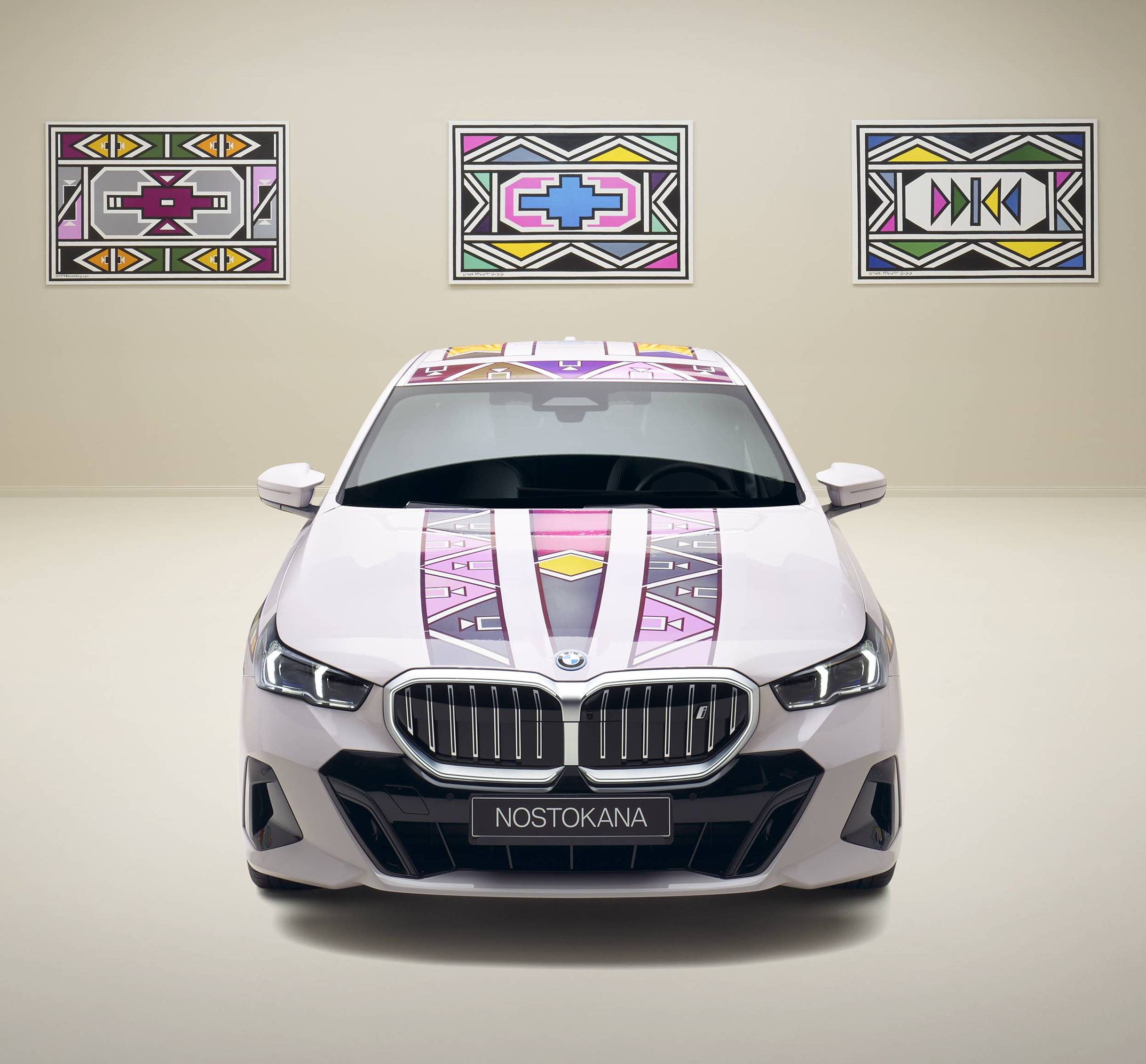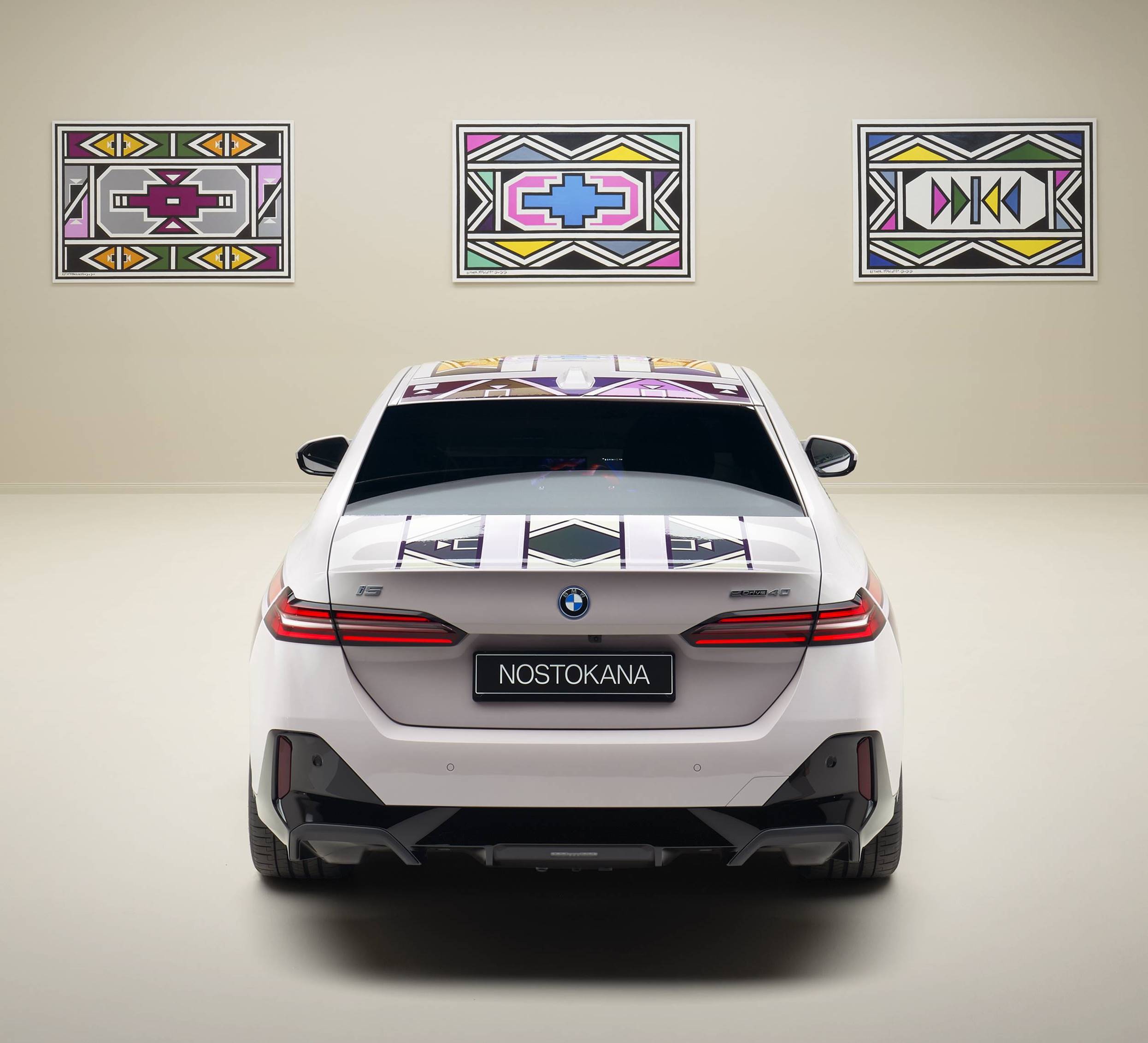 On the i5 Flow NOSTOKANA, which is named after Mahlangu’s first son, sections of film that can be electronically animated are applied, with two strips each across the roof, bonnet and rear section, as well as the vehicle’s sides.
