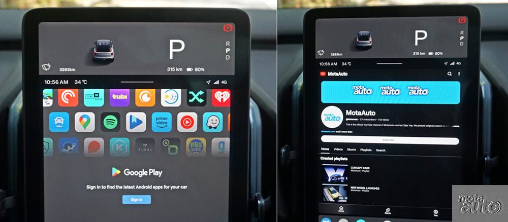 With internet connectivity, the infotainment system can use apps that are found on Android or Apple smartphones, greatly expanding its functionality. For example, YouTube can be accessed to view the videos on MotaAuto.com’s channel.